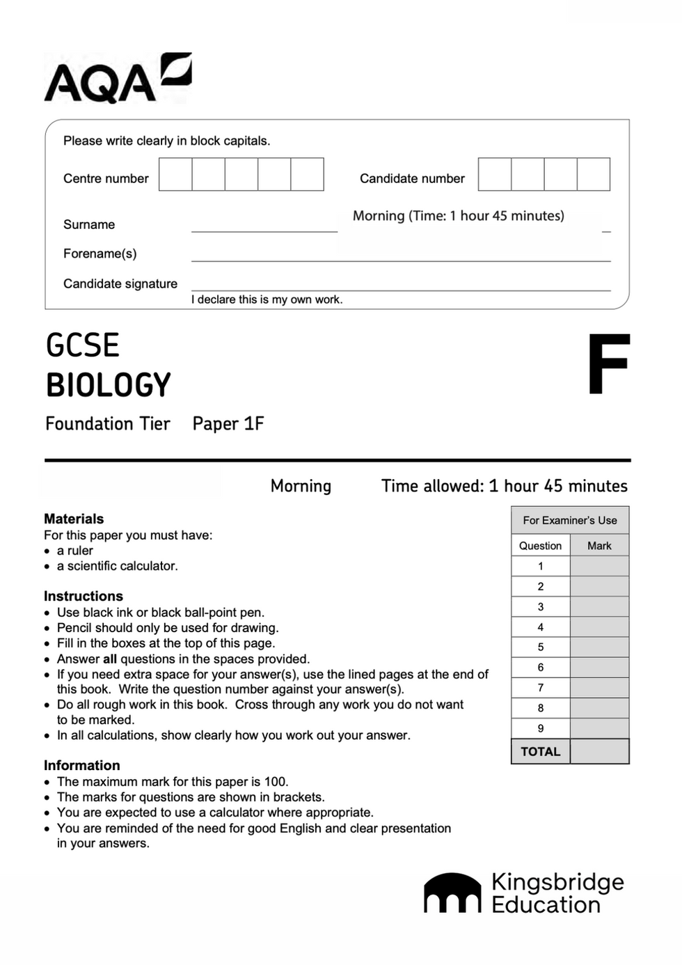 GCSE 2026 Biology Foundation Tier Predicted Papers | AQA